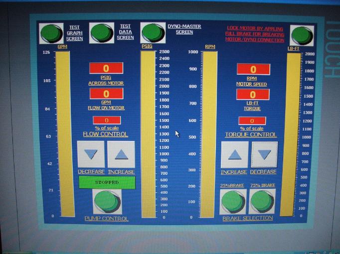 | The Dyno-Master system is used throughout the World by the Biggest and Smallest Coiled Tubing Motor service providers. The Dyno-Master is utilized to provide after redress, pre-run and post run motor performance verification. The Dyno-Master is also an excellent training tool for motor operators providing a visual representation of the correlation between an applied flow rate and the resultant pressure, speed and torque of the motor. Operators can apply variable loads to the motor, raising the differential pressure across the motor, producing torque and speed values that will allow the operator to be more effective when running the motor in the field. |
